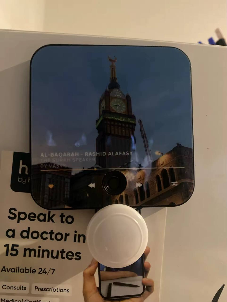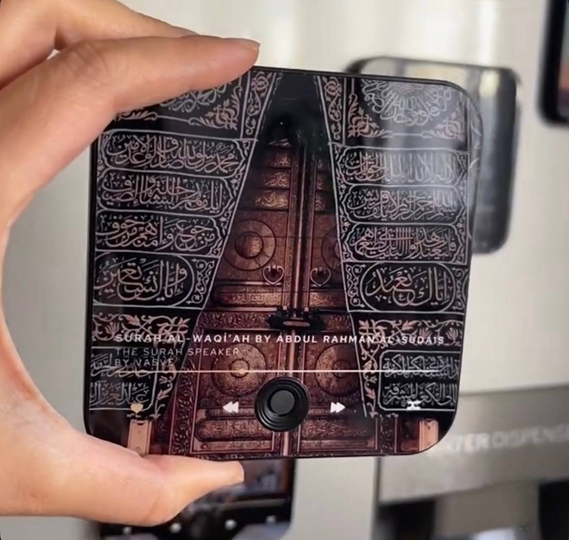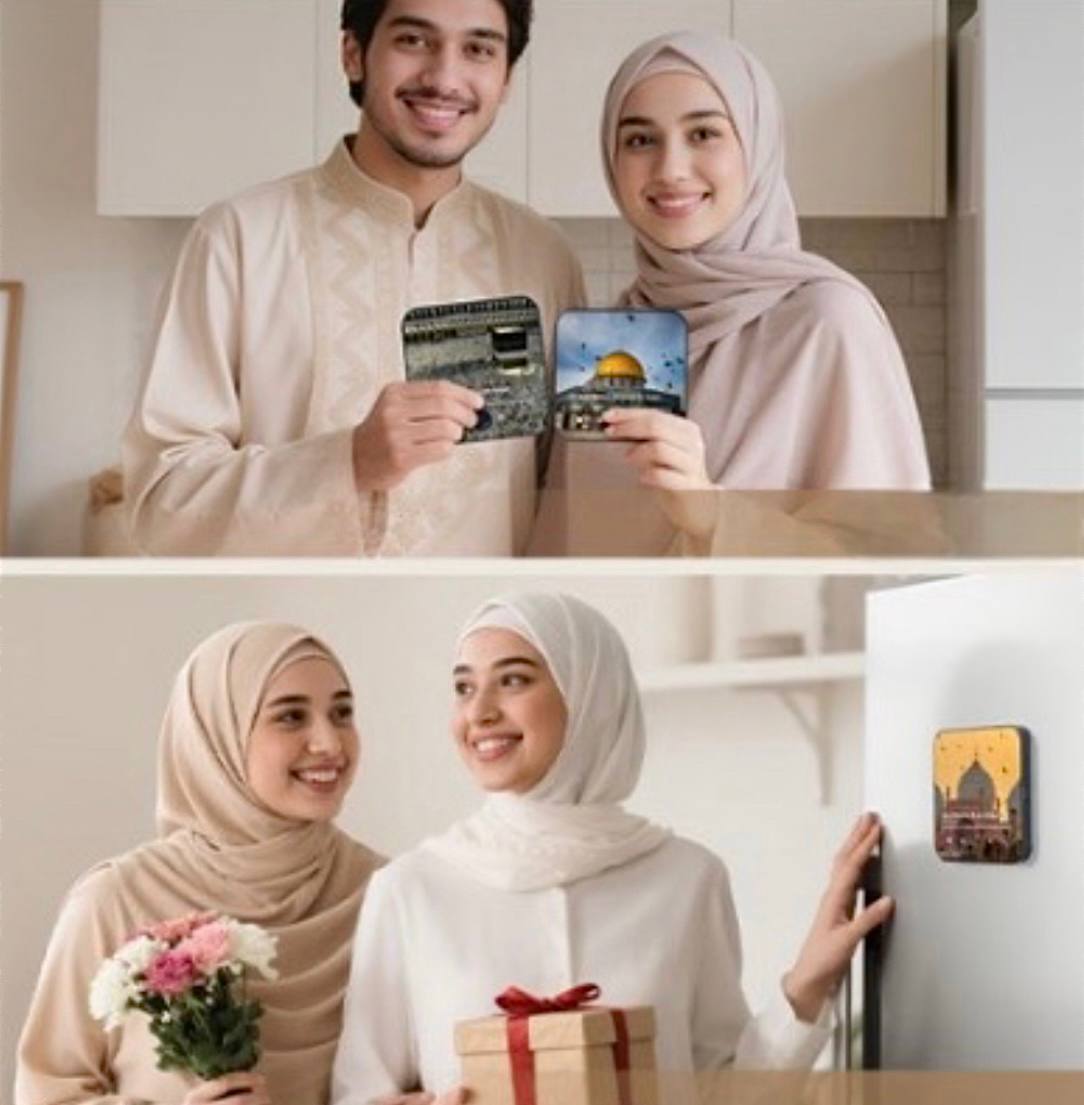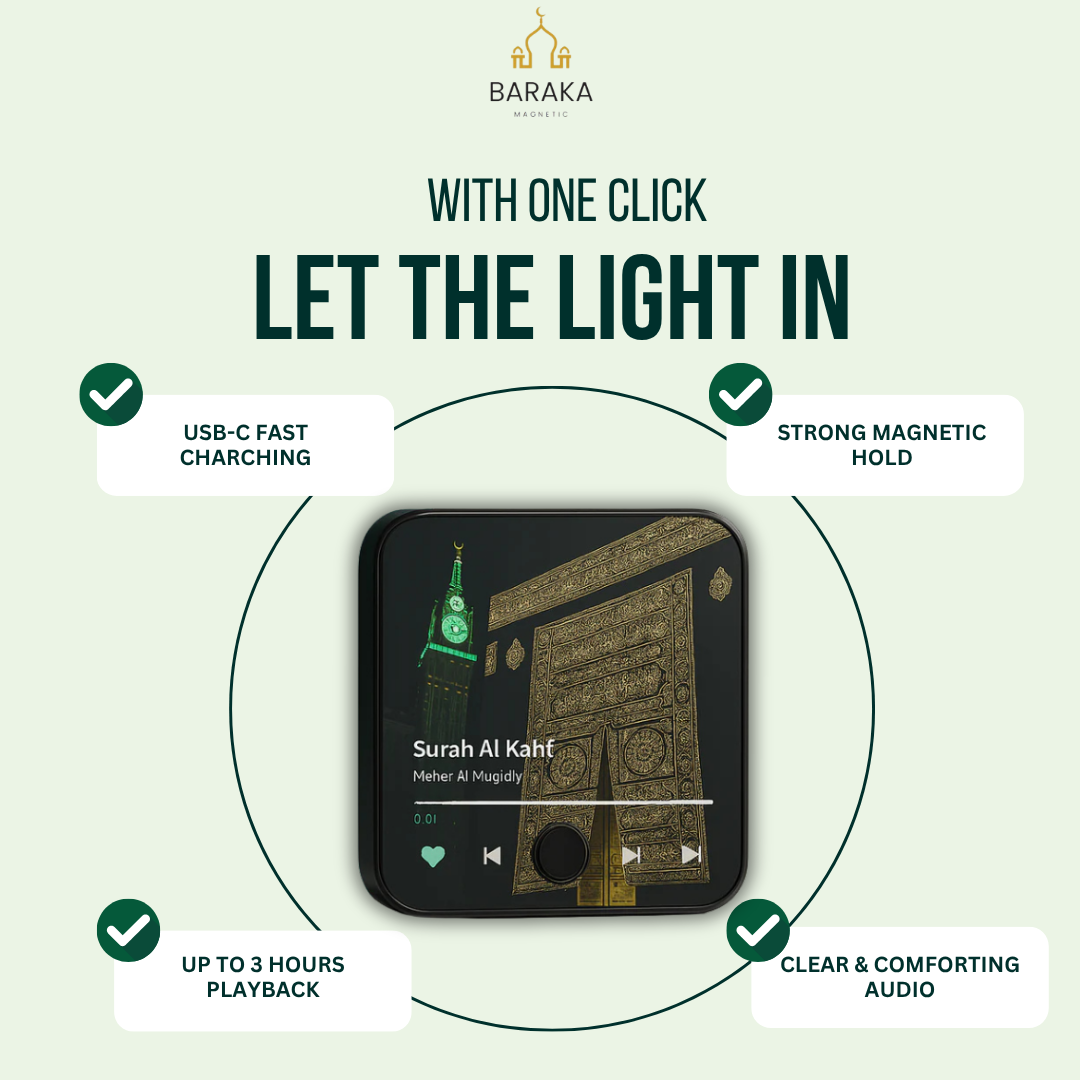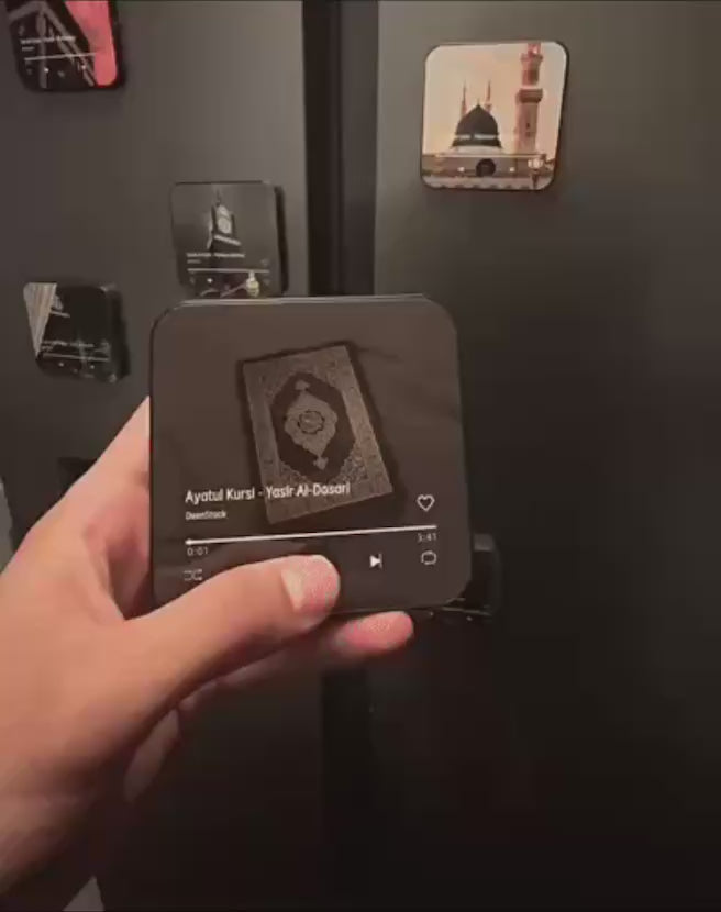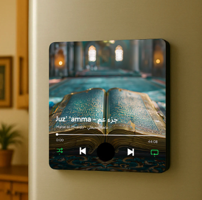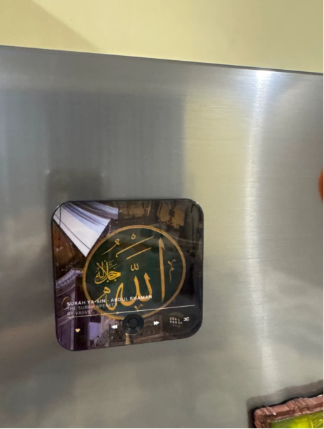 BARAKAmagnetic is a personalized Qur’an audio device that plays the surah of your choice, along with a custom image. No screen, no Wi-Fi, no setup needed — just press the single button to play it on loop. With its built-in magnet, it easily attaches to your fridge or any metal surface. Simple, practical, and spiritually uplifting.