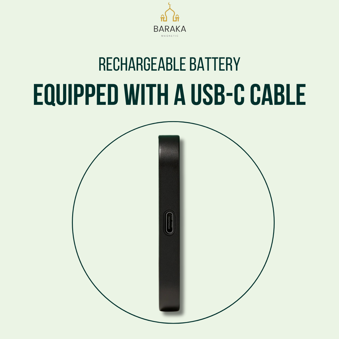BARAKAmagnetic is equipped with a rechargeable lithium polymer battery. To recharge it, use the USB C cable and connect it to a power source (charger or computer USB port). Once the battery is fully charged, the magnet is ready to be used again.