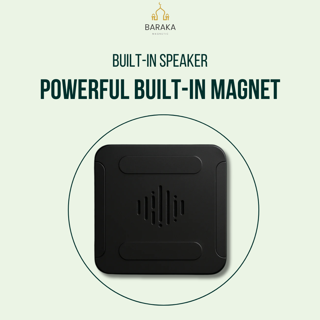 Simply attach it to any metal surface using its powerful built-in magnet. Once attached, press the center button to automatically start reciting the Quran.